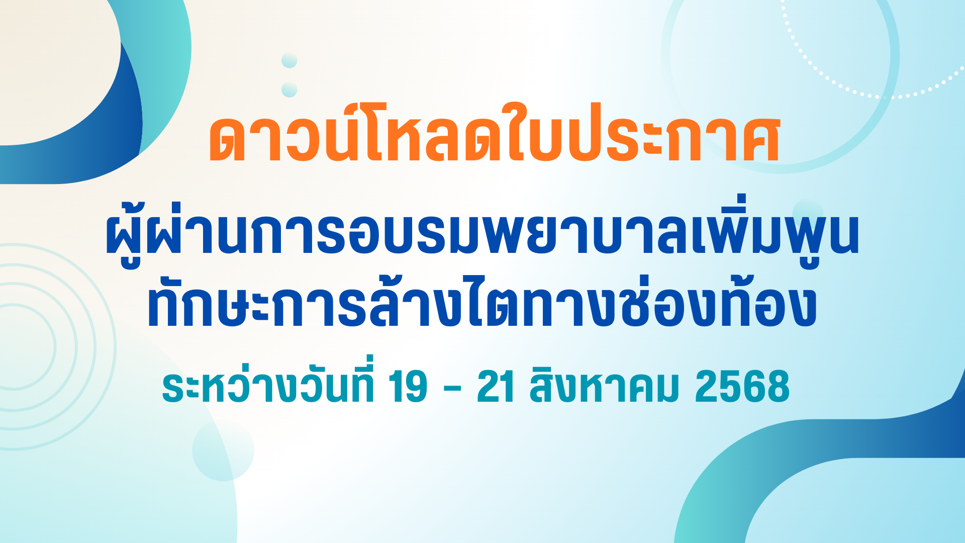 ดาวน์โหลดใบประกาศผู้ผ่านการอบรมพยาบาลเพิ่มพูนทักษะการล้างไตทางช่องท้อง